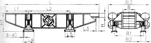 慣性振動(dòng)輸送機(jī)料槽使用橡膠彈簧或鋼簧支承,依靠固定在料槽上的兩臺(tái)振動(dòng)電機(jī)的自同步運(yùn)轉(zhuǎn),使料槽產(chǎn)生直線振動(dòng)。慣性振動(dòng)輸送機(jī)可制成上振式、下振式和側(cè)振式三種形式。